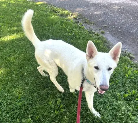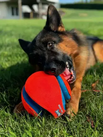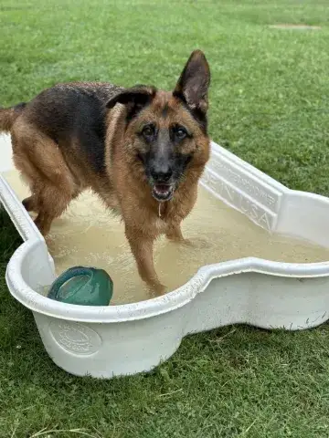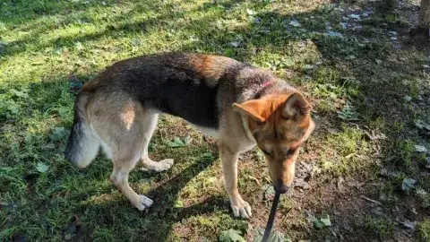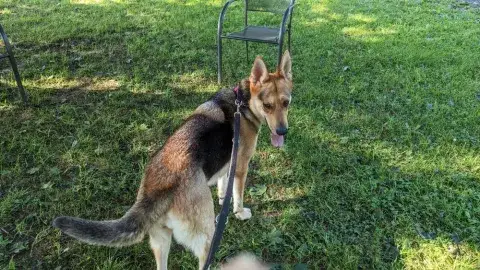 Zeus is a happy, intelligent, and playful guy. He enjoys the company of his people, but also reads the handler very well. As is true of many shepherds, Zeus will look to see what he can and cannot get away with just to make life a little more exciting. As he is a lot of dog and can be pushy, Zeus is most successful with a calm, clear, and confident handler. Having clearly been exposed to toys, Zeus loves to play ball and greatly enjoys squeaky plush toys. He often carries a toy around in his mouth on his daily walks. Capable of easily tearing up toys, Zeus is hoping his forever family has an endless supply of tough toys so that there will be time to play every day. Highly food motivated, Zeus will work for treats and food. He already knows a few commands, such as sit and come. However, as a smart guy, he will see if he can get away with getting treats for free without having to work. Training will go a long way with Zeus. Not only will it help him develop a healthy bond with his forever family, but it will also help him develop the skills needed to become a good canine citizen.
