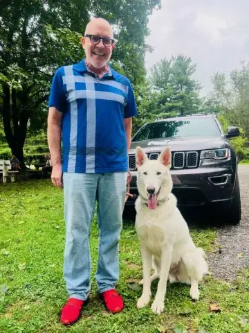 Obie was picked up as a stray in the south and brought to a shelter where he waited patiently for his family to come and claim him. Unfortunately, no one stepped forward for this handsome guy. So, he waited patiently for a new family of his very own. As he waited, the shelter staff fell in love with this boy. His happy-go-lucky personality and unending tail wags bring smiles to everyone he meets. Although shelters everywhere are struggling with overwhelming numbers of animals in need, Obie was incredibly lucky when shelter staff endlessly advocated for him to keep him alive and wait for the right placement. Unlike so many others, Obie was protected and waited for 6 months at the shelter for placement. When we learned that Obie needed a chance with a rescue that would make his wish come true, we knew this boy would find success with MAGSR. Obie's incredible team came together for him and made sure that he had the vetting needed and volunteers in place to make his journey to the mid-Atlantic and join MAGSR. We promised all of his fans that we would find him a forever home that would adore him forever.
