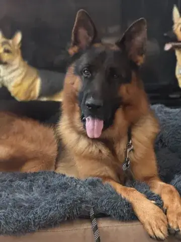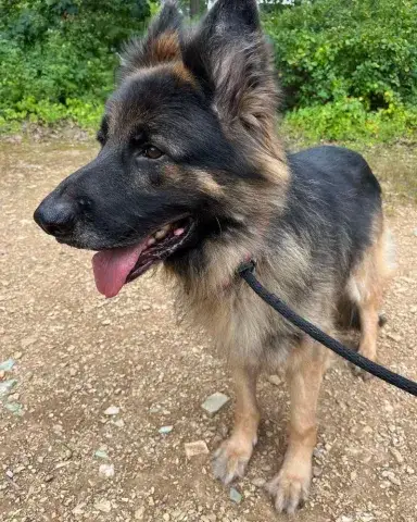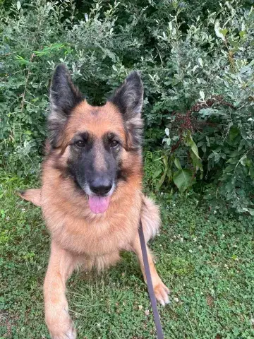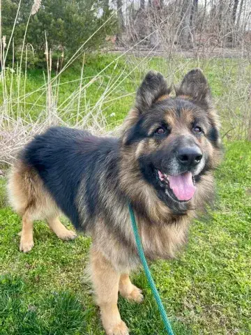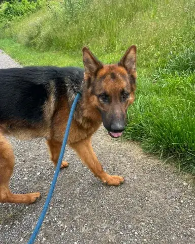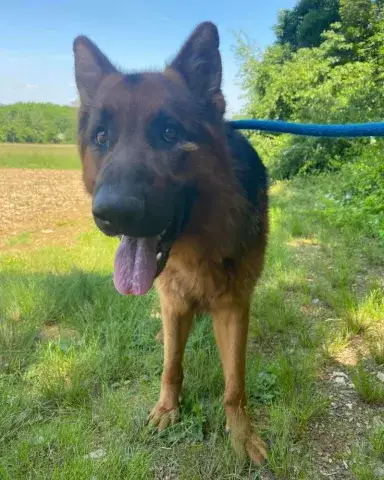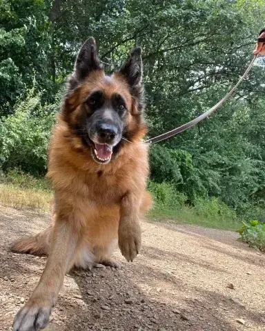 Koda is a big, sweet, affectionate guy. Clearly well socialized with people and dogs, Koda has a stable and confident personality. He is patient, observant, and doesn't miss a beat. With absolutely stunning looks and a solid personality, Koda has the type of personality that easily wins over everyone he meets. Having lived in a GSD savvy household, Koda has been given a strong foundation for success. However, as is true of all shepherds, he will only thrive when provided with structure, routine, and leadership. An intelligent guy, Koda reads the handler well. He understands clear expectations and responds accordingly. When provided with consistency and routine, Koda rises to the occasion. As a young guy, Koda is looking for a household that will provide him with daily exercise for both his body and mind. This will help him maintain his impressive personality. Although Koda has had some training already, he is looking forward to attending training class with his forever family. Training will not only help Koda bond with his forever family, but it will also help him solidify the skills needed to become a good canine citizen. Having lived in a household, Koda understands many of the ins and outs of living in a home. He is housebroken and crate trained. However, as is true of any new dog, Koda will need time to adjust to the routines and expectations of his forever family.