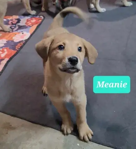 Emmie and her pups have been lucky to have lived in a loving foster family. This gave them all the opportunity to learn some of the ins and outs of living in a home. All of the babies did an incredible job with their foster family and have since moved onto foster homes where they are getting additional love and attention in smaller groups. Meenie is a sweet and snuggly girl who loves other dogs of all sizes and thinks that cats could be pretty cool too, if only they'd play with her. Meenie loves her chew toys and is slowly catching on to the joys of fetch. Meenie is an intelligent observer pup - she's bold enough to approach a stranger or new animal and smart enough to take their cues regarding how to proceed. Meenie is already well on her way to being crate trained and housebroken with only an occasional accident in the home. Like any puppy, she thrives when supported by clear boundaries, patience, and a mountain of love and chew toys. This is so helpful when learning the routines of her home. Having already begun socializing with new people, animals, and in new environments, Meenie is already building a solid foundation. It is imperative that her family continue this process as she moves forward. With the right set-up, we know this little darling will be impressive. Although Meenie is special, please remember that puppies are a lot of work. They will whine, chew, have accidents, and fill your home with endless puppy antics. With time, patience, and training, Meenie will become a stable and confident adult. Meenie is looking for a forever family that will cherish her for a lifetime. If she sounds like the right match for your family, ask to meet her today!