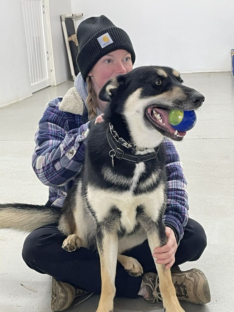 At home, Sim is a bundle of energy and curiosity. She doesn’t guard her food, toys, or space and plays well with other dogs, though her enthusiasm can sometimes overwhelm those who want quiet time. Sim is definitely not a couch potato. With this in mind, she is still working on understanding boundaries and can get herself into a bit of mischief. Sim has been known to chew on household items, dig in the yard or trash, and even counter surf for interesting objects (though not food!). She’s also quite the clever girl—when she needs to go outside, she’ll sometimes try to open doors herself by standing on her hind legs and turning the knob. She’s not crate trained yet and can’t have bedding or blankets, as she enjoys tearing them apart, but with time and guidance, she’ll learn what’s hers to play with. When provided with clear rules, routines, and structures, Sim will shine.