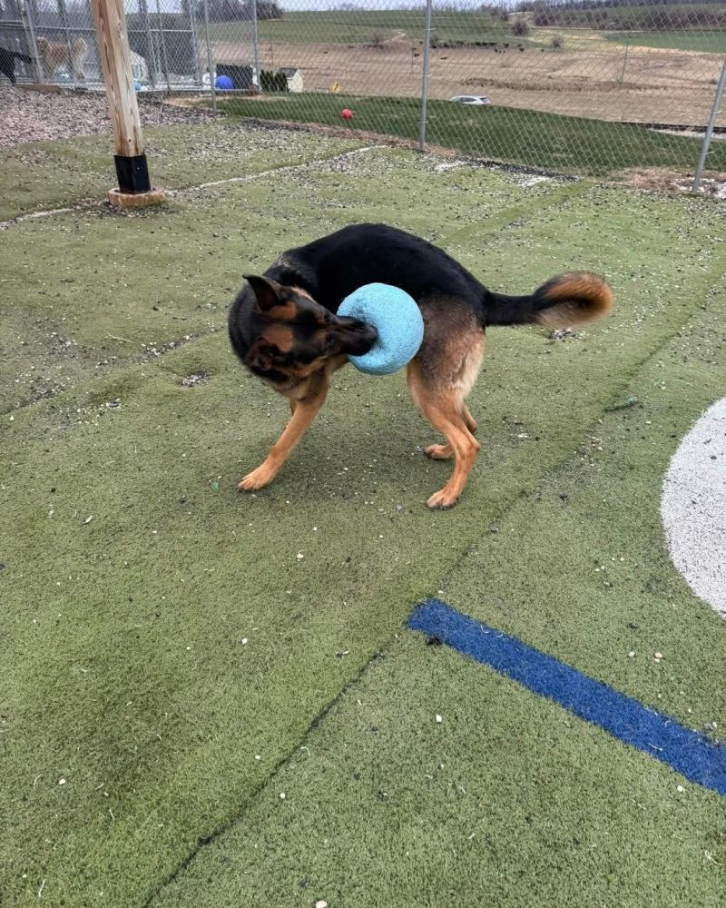 Shotsy is a handsome and intelligent boy. He, like so many GSDs, reads the handler very well, quickly determining what he can and cannot get away with. With a calm, confident, and controlled handler, Shotsy shines. He adjusts well to clear rules, structure, and boundaries; however, like any typical GSD, he will try to take advantage of the situation if the opportunity presents itself. As a dominant male, Shotsy is happy to take on the role of alpha if given the opportunity. Already knowing several commands, Shotsy likes to work and appreciates having high expectations. Although this guy has had some training already, continued training will be key to his success. Training will not only help Shotsy develop a balanced and healthy relationship with his forever family, but it will also help him develop the skills needed to become a good canine citizen. A playful guy at heart, Shotsy is hoping that his forever family has plenty of toys. Toys that squeak and balls are some of his favorites. A handler with a good throwing arm sounds like a perfect match to Shotsy. When playtime is over each day, his perfect evening involves a good meal, a brushing, and a belly rub before bed.