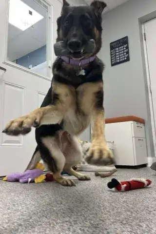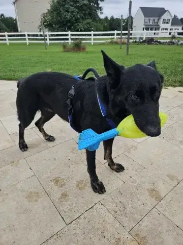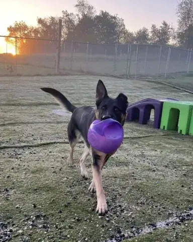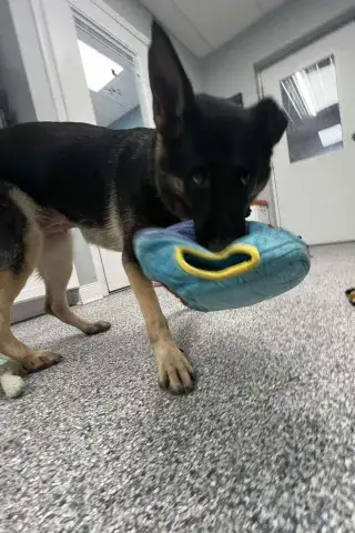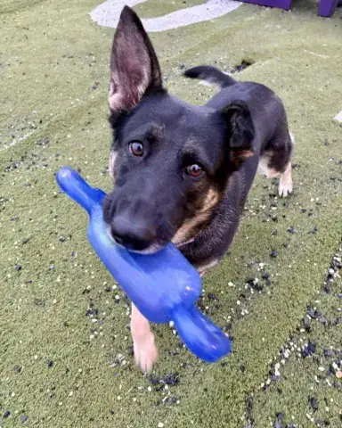 Zazoo is a stunning girl. Friendly, active, and smart this lady truly embodies the traits of a GSD. As is true of most shepherds, Zazoo will be most successful in a home that will exercise both her body and her mind on a daily basis. This will help her maintain her stable and confident personality. Having lived in a home previously, Zazoo did well with the children in the home. However, as is typical of the breed, she can be protective of the household. With some clear prey drive in place, Zazoo is not suited for a home with small animals or cats. She is already housebroken, crate trained, and knows many of the ins and outs of living in a home. It is important that her forever family, provide her with structure, routine, and leadership so that Zazoo can adapt to the expectations of her forever home. Well aquainted with toys, Zazoo loves to play and can entertain herself or interact with others.