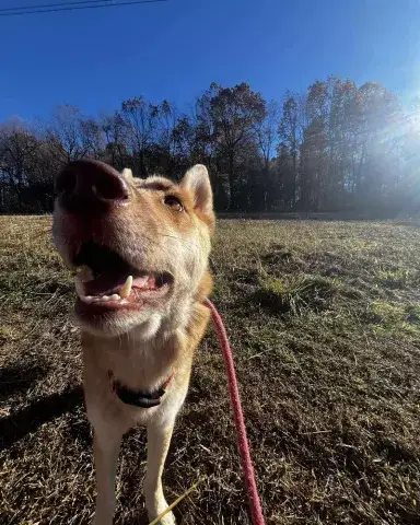 If you’re looking for sunshine wrapped in fur, look no further than Sim! This happy, affectionate girl is full of life, energy, and love to share. Sim is always ready to greet new friends—human or canine—with her trademark wiggly booty, bright eyes, and big, goofy grin. She loves meeting new people and has never met a stranger. Although she hasn’t been around children before, her friendly, social nature suggests she would greet them with the same enthusiasm she shows adults.