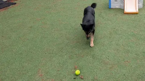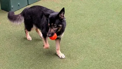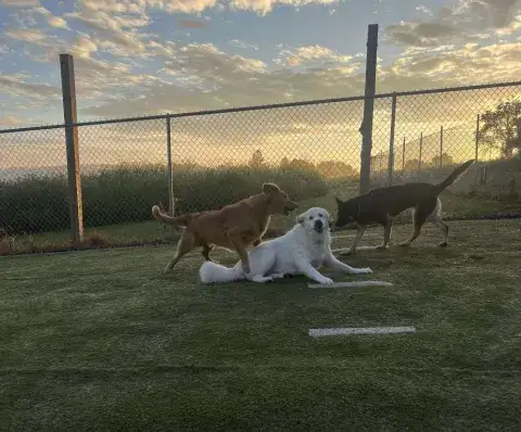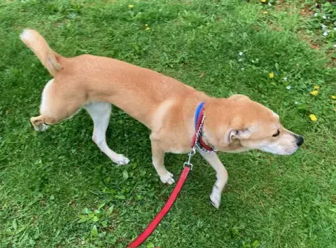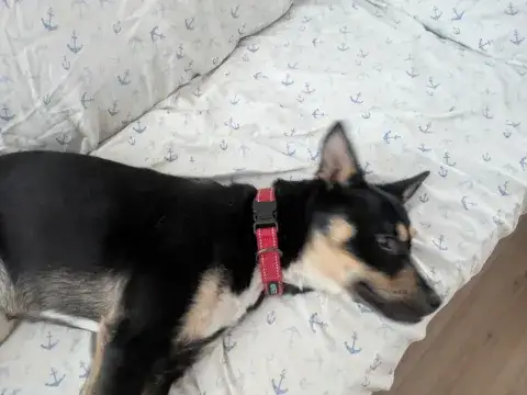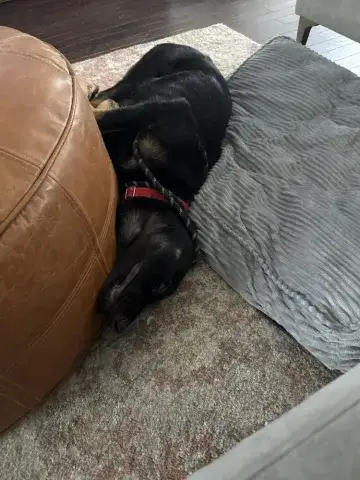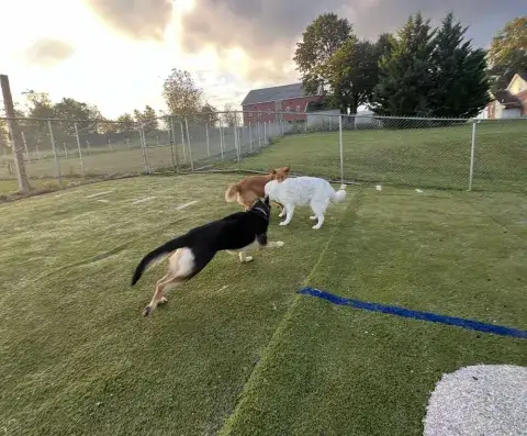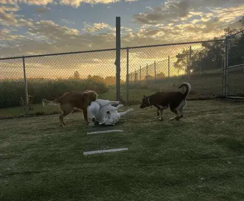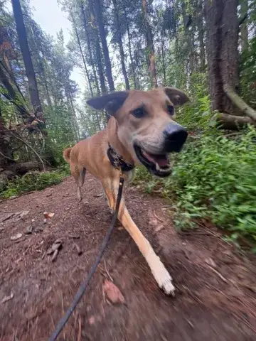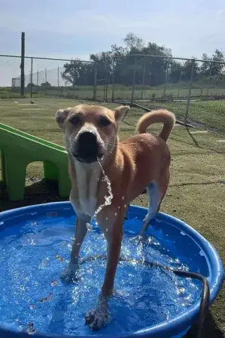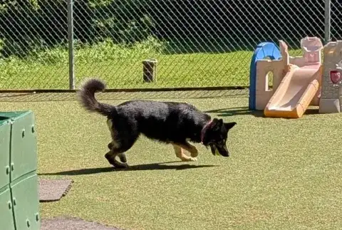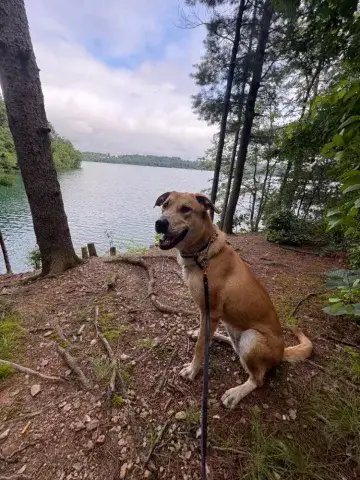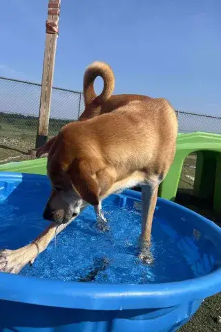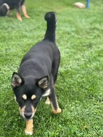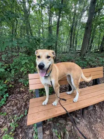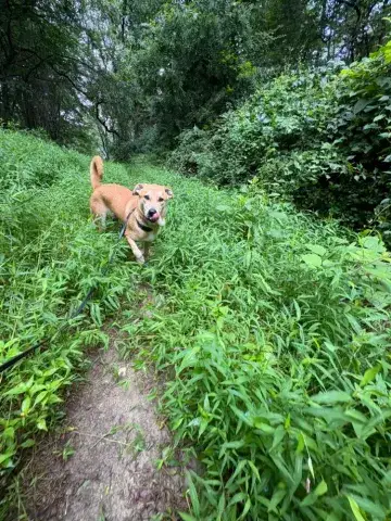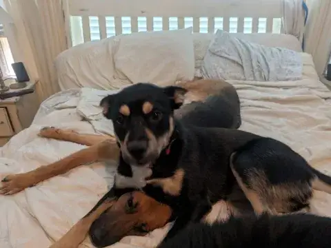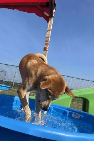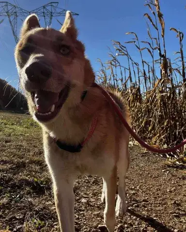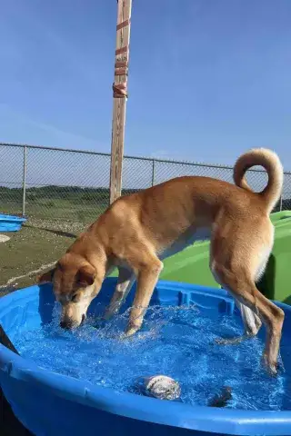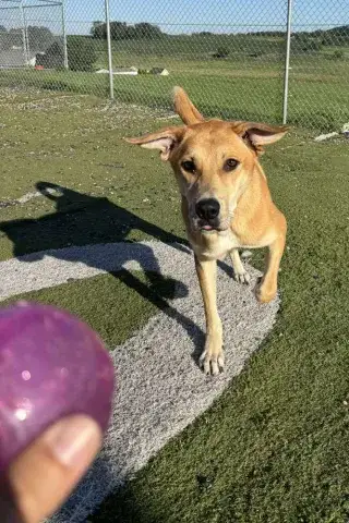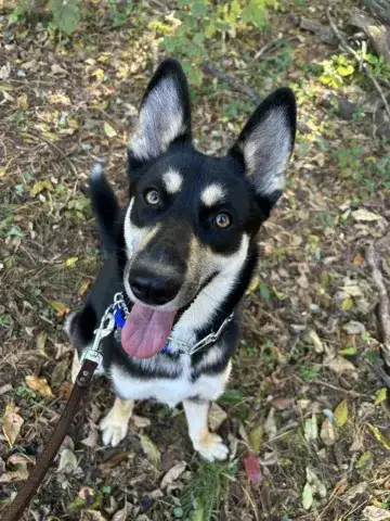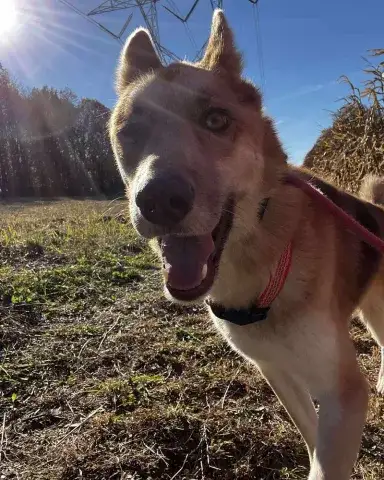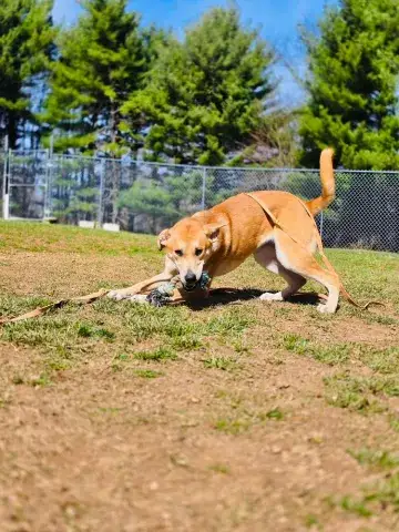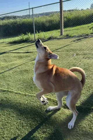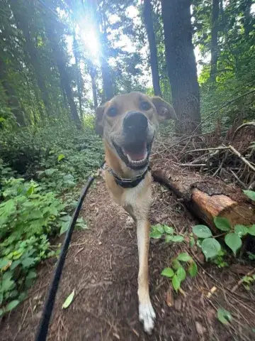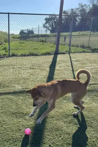 At home, Sim is a bundle of energy and curiosity. She doesn’t guard her food, toys, or space and plays well with other dogs, though her enthusiasm can sometimes overwhelm those who want quiet time. Sim is definitely not a couch potato. With this in mind, she is still working on understanding boundaries and can get herself into a bit of mischief. Sim has been known to chew on household items, dig in the yard or trash, and even counter surf for interesting objects (though not food!). She’s also quite the clever girl—when she needs to go outside, she’ll sometimes try to open doors herself by standing on her hind legs and turning the knob. She’s not crate trained yet and can’t have bedding or blankets, as she enjoys tearing them apart, but with time and guidance, she’ll learn what’s hers to play with. When provided with clear rules, routines, and structures, Sim will shine.