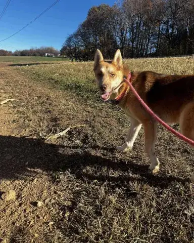 Reba is settling in nicely. We are still working on housebreaking—she is currently most comfortable using pee pads in her crate. She has gone outside twice while we were playing in a field.Reba is dog-friendly and loves balls and hard chew toys like Nylabones. She is a rough player and can be a bit bossy. She does well in a crate as long as she can see people. She is not a big barker unless she sees another dog she cannot meet, and she settles down with correction. We are working on crate training (being alone), basic obedience commands, and housebreaking.She has completed her treatment for her skin concerns. The hair on her ears and around her eyes is slowly growing back. She is still itchy, but it has improved. We are now starting Doxycycline for Lyme disease.