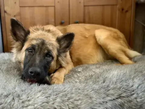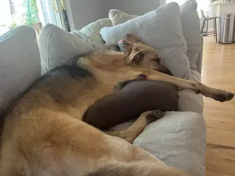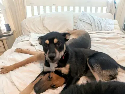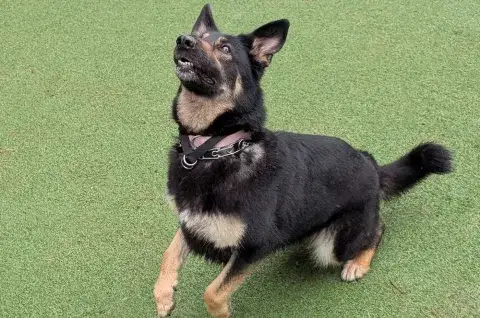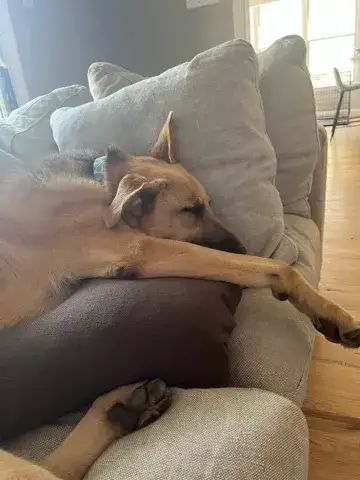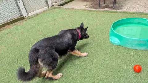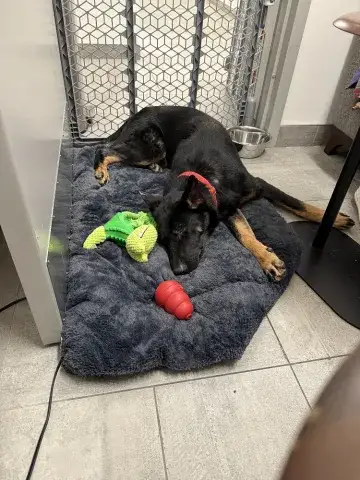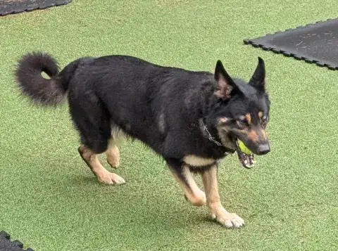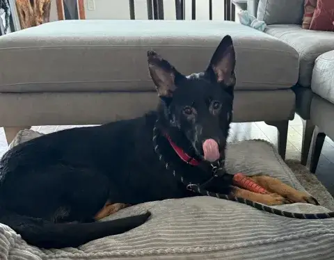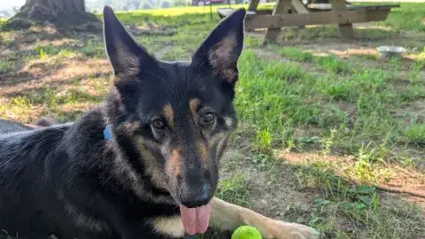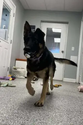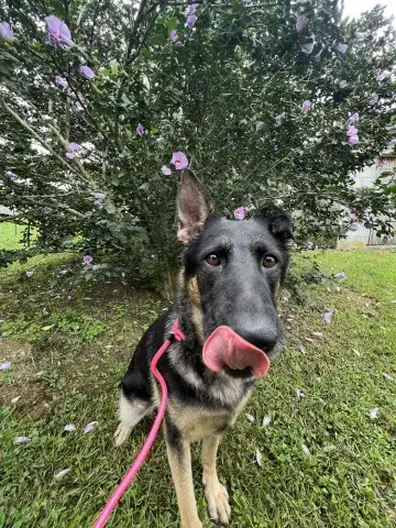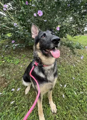 Sim is a fun-loving, curious companion who thrives on attention and playtime. She’s happiest when she’s part of the action, whether that’s going for a run, playing in the yard, or just soaking up affection from her favorite humans. She’s loyal, full of personality, and has an infectious zest for life that makes every day brighter. Sim is simply all about enjoying every ounce of life. As is true of the breed, particularly younger GSDs, Sim will thrive with continued training, clear boundaries, and consistent structure. She knows how to sit and shake paws, but she’s still working on perfecting her potty training and leash manners. Her curiosity sometimes gets the best of her—she may zigzag on walks, pull ahead to investigate something fascinating, or stubbornly stop when something catches her eye—but with patience, direction, and positive reinforcement, she’s eager to learn and please.