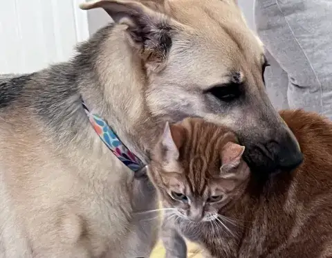 Today, Moonlight is thriving. She is smart, alert, affectionate, and energetic — everything you’d expect from a classic German Shepherd. She’s always ready for a new adventure and loves interactive time with her people. Her resilient spirit, loyal nature, and engaging personality make her truly special. As a dog with drive, Moonlight loves toys and activity — but she also has a strong prey instinct. For that reason, she is not a candidate for a home with cats or other small animals. However, she is social with other dogs and may do well with a compatible canine companion.