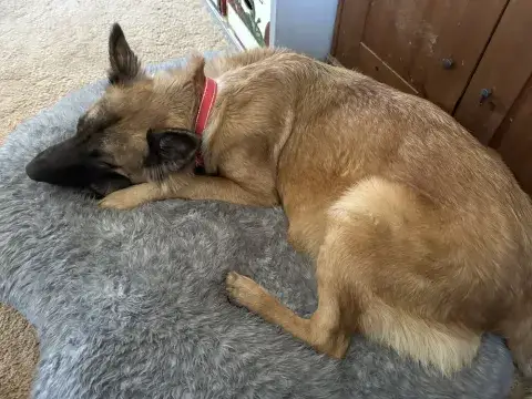 Though Ivy has known human kindness, she has never known the comfort of a true home until now. She came to MAGSR having never lived in a home, yet her soulful eyes and calm presence speak of a dog who still believes in love. Physically, Ivy carries the weight of a life spent giving more than she received. Her body shows signs of many litters, untreated medical conditions, and severe arthritis. When her pain became too much to ignore, a decision was made to give Ivy the care she so desperately needed — and she joined the MAGSR family.