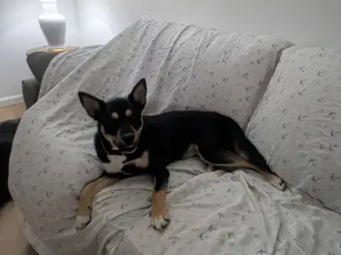 Thanks to time in a fantastic temporary foster home, we’ve learned that Mavis already has great house skills. She is housebroken, crate trained, and polite on leash. She takes care of business right away when outside and will sit patiently while waiting for her leash to be removed—though, as a young pup, she can get a little excited if it takes too long! Occasionally, the world is just a bit too exciting and she may dash suddenly on leash, but overall she is learning quickly. Mavis enjoys relaxing with her people and has a love-hate relationship with the TV—she likes to watch, but may react when animals or certain sounds appear. She’s incredibly affectionate and believes being a lap dog is a very serious job. Having been overcorrected in the past, Mavis may briefly retreat when told “no,” but she quickly bounces back, eager to give kisses and reassure herself that all is well.