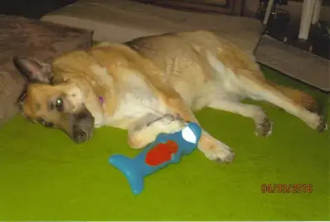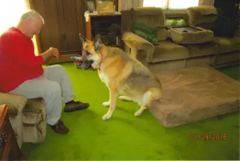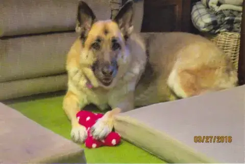 It is with a very heavy heart that we must report the loss of our very precious Ziva. We adopted Ziva November 1, 2014, the same day that she adopted us. Ziva was a senior dog at the age of 7. We had almost 2 years with her but would of loved many more. Ziva crossed the Rainbow Bridge September 7, 2016 at the age of 9. Ziva was diagnosed with Hermangiosarcoma , A very aggressive cancer (Blood vessel cancer) on August 22, 2016. By the time Ziva showed any sign of illness, she already had a massive tumor on her spleen, smaller tumors on her liver and lung. Our vet told us that the outcome was very bleak with this type of cancer. So we made the decision to just make her as comfortable as possible for the time she had left. The meds seemed to be helping at first but than she started to decline rapidly and was showing signs of internal bleeding. We had to make the hardest decision of our life to let our baby girl go. We are sure we did what was best for Ziva, but it still breaks our heart that we didn't have alot more time to spend with her. Ziva was a total joy to have as a member of our family. She was much more than a pet. She was like our child. Ziva fit right into our daily routine from day one. She was meant to spend the rest of her life with us. We are so happy that we could give Ziva the happy life that she deserved. Ziva certainly made our life happy everyday! She loved us as much as we loved her. She wanted to be with us no matter where we were. Ziva loved to ride even if it was just a short trip into town or a long ride on vacation. All you had to say is, do you wanna go bye byes and she would turn inside out. Ziva loved to go on long walks and loved people.  (She was protective of her mommy) but a real gentle giant. (Just bein the German Shepherd that she was suppose to be.) She did pretty good most of the time when we met other dogs. There were a few she didn't like. She was a very spunky 9 year old. She loved to play. Tug of war was her favorite but she liked to fetch also. She was our Angel. A very BIG BEAUTIFUL GIRL. We always got alot of compliments wherever we went because she was so pretty and well mannered. Ziva always watched mommy leave for work and as soon as I pulled out she would grab a toy and make daddy play with her. Ziva was always laying at the front door when it was time for mommy to come home from work and jump up when I pulled in and met me at the back door. I always got lots of kisses everyday and boy do I miss them! Ziva would come into the bedroom in the morning and give me a big kiss than go around to daddy and stick her cold nose under the covers until she found his back. When Ziva got up everybody was suppose to be up. She made us laugh everyday. Ziva had such a wonderful personality. Ziva was a true gem! We could go on and on about our wonderful girl, but I guess I better stop here. Thank You MAGSR for giving us the chance to make Ziva's and Our life so much more fulfilling. Ziva we love and miss you!! Jeff and Wanda Hallowell