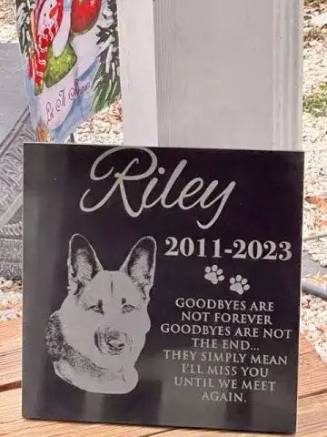 Losing Riley has been very difficult for us. We adopted her from you in May 2016. From the second she jumped in our truck it was like she had always been with us. She came into our home and went right to the bed we purchased for her. That evening she came up with us to go to bed and immediately walked over and curled up on hers. She slept through the night without issue. She was so amazing and we loved her with all of our heart. She loved to be out on the porch or on the deck and looked forward to evenings around the fire pit and she loved her walks. She was so much more to us than a pet; she was family.  We love to vacation in a cabin over in Virginia and we always took her with us. We have not been the past two years because Riley’s degenerative myelopathy made the three hour drive too difficult for her and we would not leave her behind.  On January 16th we had to say goodbye to our sweet girl. It was the hardest thing we have ever done. We know in our heart of hearts if she could say anything to us she would tell us to do for another dog what we did for her. Our hearts just are not ready right now. She truly was our world. We thank MAGSR for the opportunity to have her in our lives. We appreciate all you do for so many dogs in need of love, affection, and a good home.