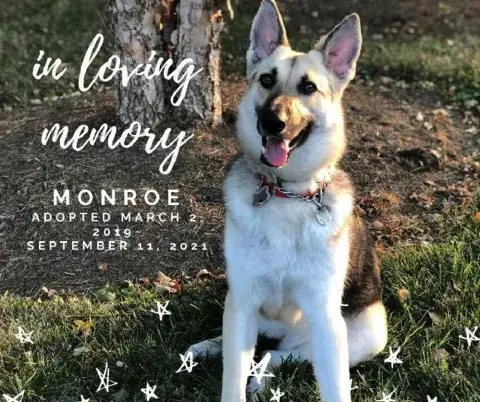 My Shadow I entered the journey of adopting a GSD without truly understanding the lasting imprint a true, pure, and perfect creature of God would leave.  Who knew my shadow was in the shape of a German Shepheard!  It was March 2, 2019, when we returned to look at few more dogs for the umpteenth time.  This time was different and I knew that.  Monroe silently spoke to me on a completely different level; she was tiny but mighty.  Trish, one of the key volunteers with MAGSR, dubbed her the ‘Tiny Terrorist’, and in the following years, we discovered why in the purest and most loving way. No one could imagine the lives these poor pups, the Georgia-38, came from; starvation, neglect, abuse, and worse, but MAGSR gave these beautiful creatures the opportunity to be shown true love, affection, structure, more love, consistency, guidance in return for their loyalty. For that, we are eternally grateful.   Monroe was a mess and it was going to take a lot to heal her from the horrid past.  We poured on the training, love, affection, patience, structure, and FOOD like never before.  It was the best three years for all of us.  Over those years she helped me with countless things from trivial tasks to the meaningful comforting of not only myself but friends who were surprised to learn Monroe could sense they needed comforting.  She was an expert at cleaning the dishes (no pre-rinse needed), she HATED the vacuum as much as I did, guarded the house when we were away, helped me achieve the walking century club with Peloton in record time (wearing my century club T-shirt as I type this), and so much more.  I watched a dog who was unfamiliar with love afraid to move to a dog jumping up on 3’ to 4’ walls on command.  GSD’s are in my eyes the perfect creature, just perfect except for one thing; their life expectancy.  We just never know when they will be called back up to Heaven.  I’ve had many dogs and it’s never easy to say goodbye to your family pet, never.  But saying goodbye to Monroe has been beyond devastating.  It feels like a void larger than the Grand Canyon.  I will always miss her fierce loyalty, her ability to protect me, help with dishes, her trying to kill the vacuum cleaner and overall being an incredibly spoiled and loved member of our family.  I will miss my shadow. I will never understand why she was called too soon, but I am thankful we had the time we did.  I love you Monroe and you are beyond missed.  Until I meet you on the Rainbow Bridge…