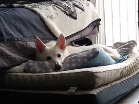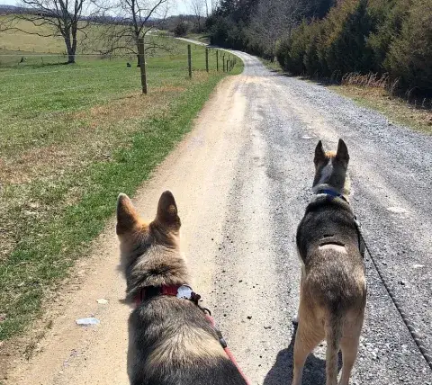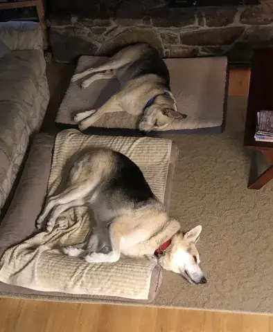 Sammie was adopted on March 14, 2021, as half of the “bonded pair” Kota and Birch (renamed Sammie and Bosco).  She was an older dog, possibly as old as 10 years.  She had some physical problems and had recently had surgeries prior to adoption.  She was doing very well though and seemed to thoroughly enjoy the 6 months that she was living here.  As the pictures show, she and her buddy Bosco loved their naps and they enjoyed monitoring the back yard for deer. She also enjoyed the two walks per day in the woods, up and down the hills, and along the lane.   She was a beautiful and very affectionate shepherd who quickly learned commands.  My hope is that in her early years, she was owned by someone who cared for her.  We miss her very much.