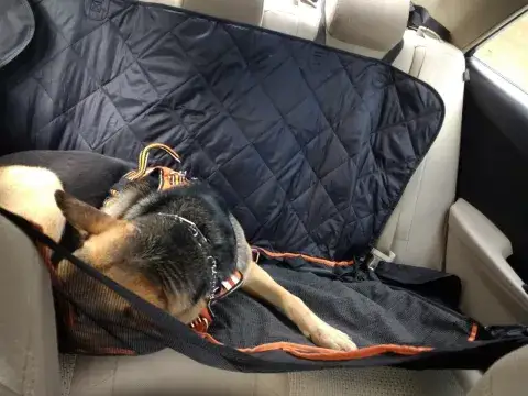 Buddy (formerly Riptide) is settling in well. We are giving him plenty of exercise, discipline and affection; and he's rewarding us with his best behavior and love. Here's a photo of him curled up in the back seat of the car after walking and running alongside us for three hours on the Harper's Ferry trails. Buddy's Family