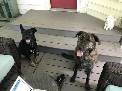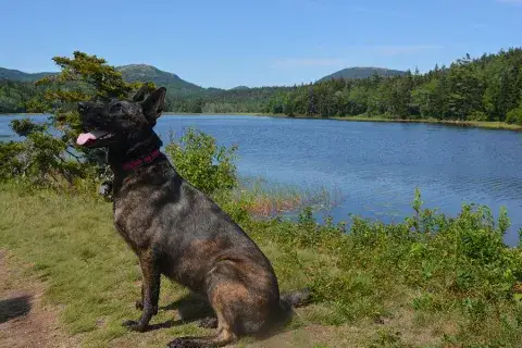 Elke continues to perfect her fetching skills and loves going hiking with us.  We take her to as many places with us as possible.  Last year she went to West Virginia and Acadia National Park, ME for cabin camping adventures.  She even rode the buses around Acadia and did very well with all the commotion.  She’s a very polite guest at restaurants especially when they provide water.  She welcomed a couple of fosters and a new fur sibling, Caesar.  She wasn’t too sure about Caesar, being blind, he doesn’t always act like a normal dog.  Thanks again MAGSR for the perfect pup!