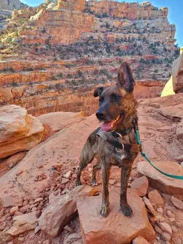 Wesson, adopted April 2017 at 9 weeks old, has excelled at everything we have thrown at him! He has become a sport dog competing in Dock Dogs, Agility and Nosework. We train at a IPO (schutzhund) club once to twice weekly and earned his beginner title and is now on his way to becoming a search and rescue pup! When were not training or competing we also love traveling and hiking! This year Wesson flew with us to Utah where we traveled the state and hiked the trails and slot canyons. Wesson also became the first dog to ride in a UTV through some of the more difficult trails in Moab! When we're home, his favorite past time is learning new tricks, playing ball and swimming. Wesson has become a huge part of out lives and we wouldnt have it any other way! A huge thank you to MAGSR for this perfect adventure pup and fitting him with our family!