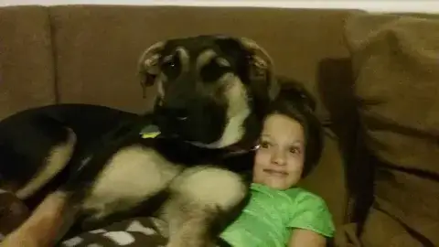Jackie (adopted July 15, 2017) is a furry ball of love and energy! She gets so excited no matter what we do and she is really a great member of our family! She gets along well with her older sister, our 7 year old German Shepherd named Ellie. She loves to snuggle and always wants to be wherever we are!