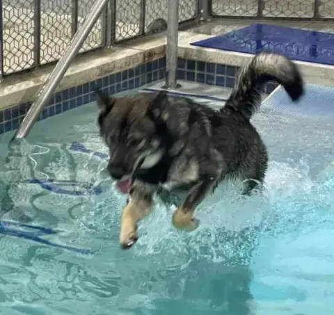 He loves people, dogs and day camp, swimming, agility and tricks training, and learns everything VERY fast.