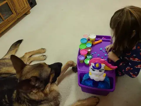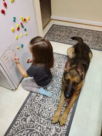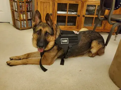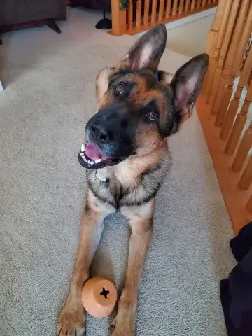 Casen has been with us since Oct 2020. He has been settling in nicely with us. He loves to go on walks, drop toys on mom's laptop when she's working, play rough with Dad, and play with his sister! He also loves snuggles and getting his ears scratched! He doesn't like other dogs, but he loves watching and playing with the neighborhood kids!