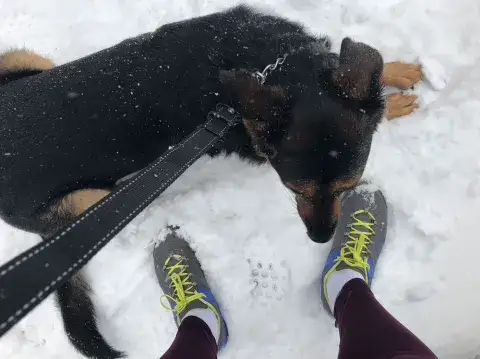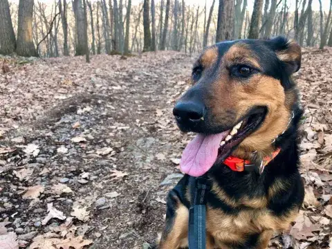 She continues to blossom into a very happy, well-behaved, and obedient dog with more recall training and heal training that we try to keep up on a daily basis. She enjoys road running (up to five miles long) and trail running (hoping to stretch it out to longer distances on the trail) and knows when her running partner is getting ready to go for a run. Dakota immediately sits right in front and looks straight in the eyes, as if to ask, “Am I going? I’m ready! Pick me!” Even if she is tired and spent from a morning run, Dakota will perk up at the word "run” or “ready” a few hours later and will never pass an opportunity to go outside.