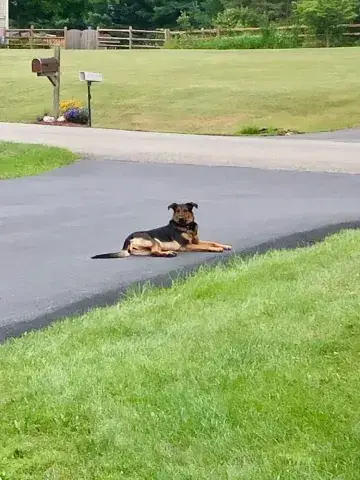 Dakota is friendly with other dogs and has occasional play-dates with her dog-neighbors.
