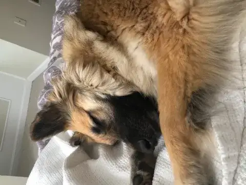 We have had our Big Baby (my nickname for her) for two years now. She will be 3 in December and is such a joy and is so smart! She loves to play and can spend hours playing catch. She will literally throw her ball back to me after she has caught it. She knows a number of commands and has great manners. She loves to learn, to play tug of war, and she invites herself into our elderly neighbor’s house to check on them and leave. No seriously, if someone is by their front door, she will run over to go inside and run to the back bedroom to check on “Pop” (the elderly gentleman) and then comes out! She is full of love and truly believes she is welcome anywhere she goes. She brings us so much joy and is my number one snuggle buddy. Our older dog (13) has a new found energy and loves to play hide and seek with her. Thank you for our Big Baby, my light, my joy!