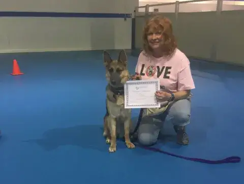 I was interested in rescuing a GSD and started following MAGSR. I became intrigued with the pups they rescued from Georgia and kept following their stories. I decided I wanted to make a difference in one of their lives, so we went to two "meet and greets" I loved all of the pups that were there. On Easter we adopted Tilly! MAGSR had provided her with so much love and patience, now it was our turn. Tilly is skittish, but has come a long way, she is earning our trust, she loves her crate and that is her safe place. She was already great with household noises like tv, phone, vacuum, fans, coo-coo clock and our cats. She does well with other dogs and loves to go on walks. Tilly had to master laying on a dog bed and getting in and out of a car, we had to pick her up to put her in, she is now a pro! We started out slow going to PetSmart and Lowes, now we drive to the beach, she gets excited when I start packing, she gets carsick most of the time, but she's getting better. Tilly is scared of some people and my sons, we are working on that by having my sons feed her dinner meal and dropping treats. When Tilly first came into our lives she was attached to me the majority of the time so she wouldn't hide in the corner or pace back and forth. We keep in touch with her foster family and a special FB page just for these wonderful Georgia pups, that has helped me out tremendously when I had questions and to see all the other pups progress. Tilly has successfully completed Basic Obedience 1 training and we are starting Basic Obedience 2. She is so smart and learns new commands or things in general quickly. We now have her off leash in the house and backyard. She is never outside by herself, she actually prefers to be inside. Tilly's next goal is to learn to play with toys and other dogs. I am so happy that we made the decision to make a difference in her life, to give her lots of love and patience so she can have a wonderful life! I love her so much! It's such a great feeling too! If you have love and patience please consider adopting one of the remaining GA38STRONG pups.